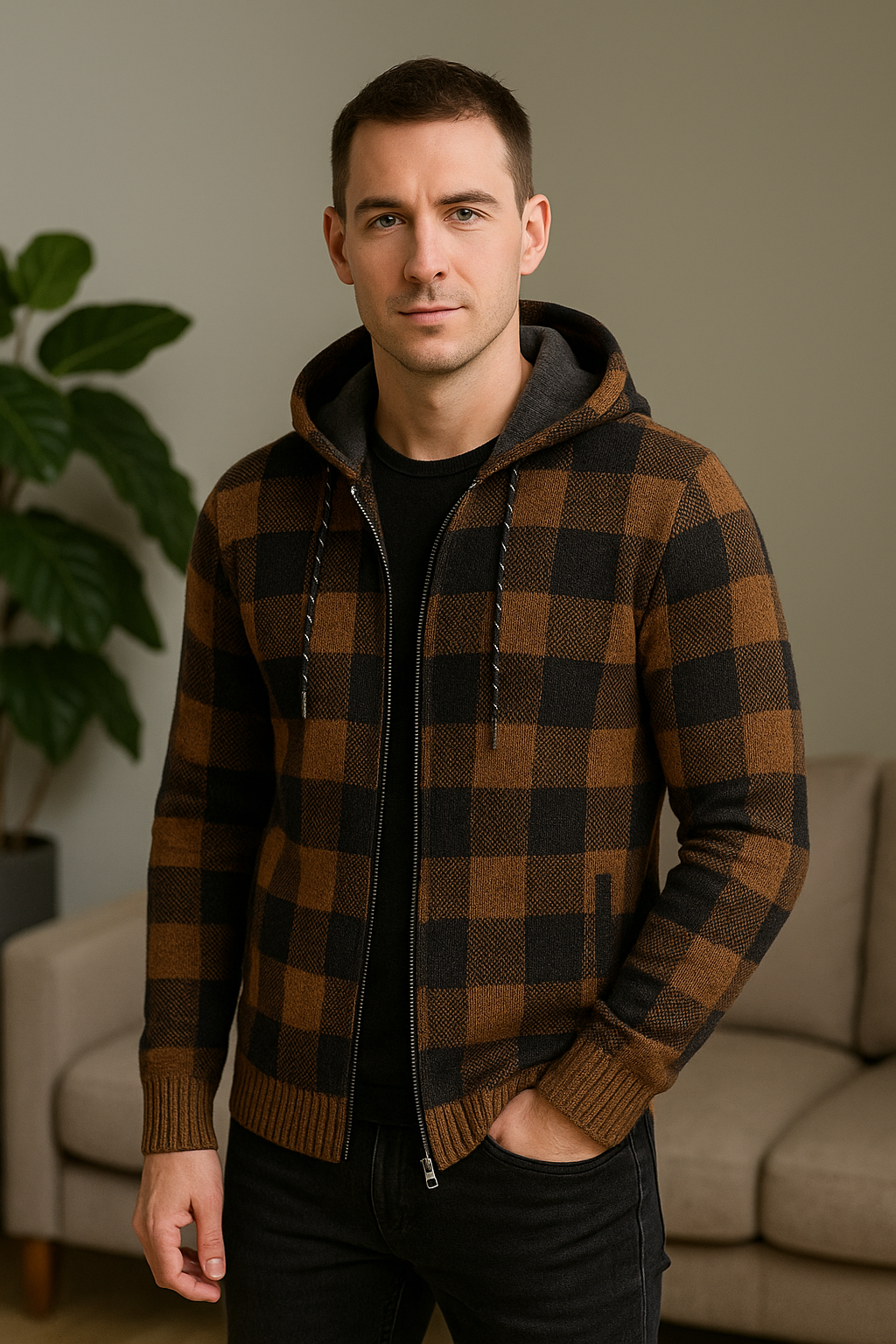 Geruit Heren Hoodie Jas – Warm, Stoer & Onmisbaar